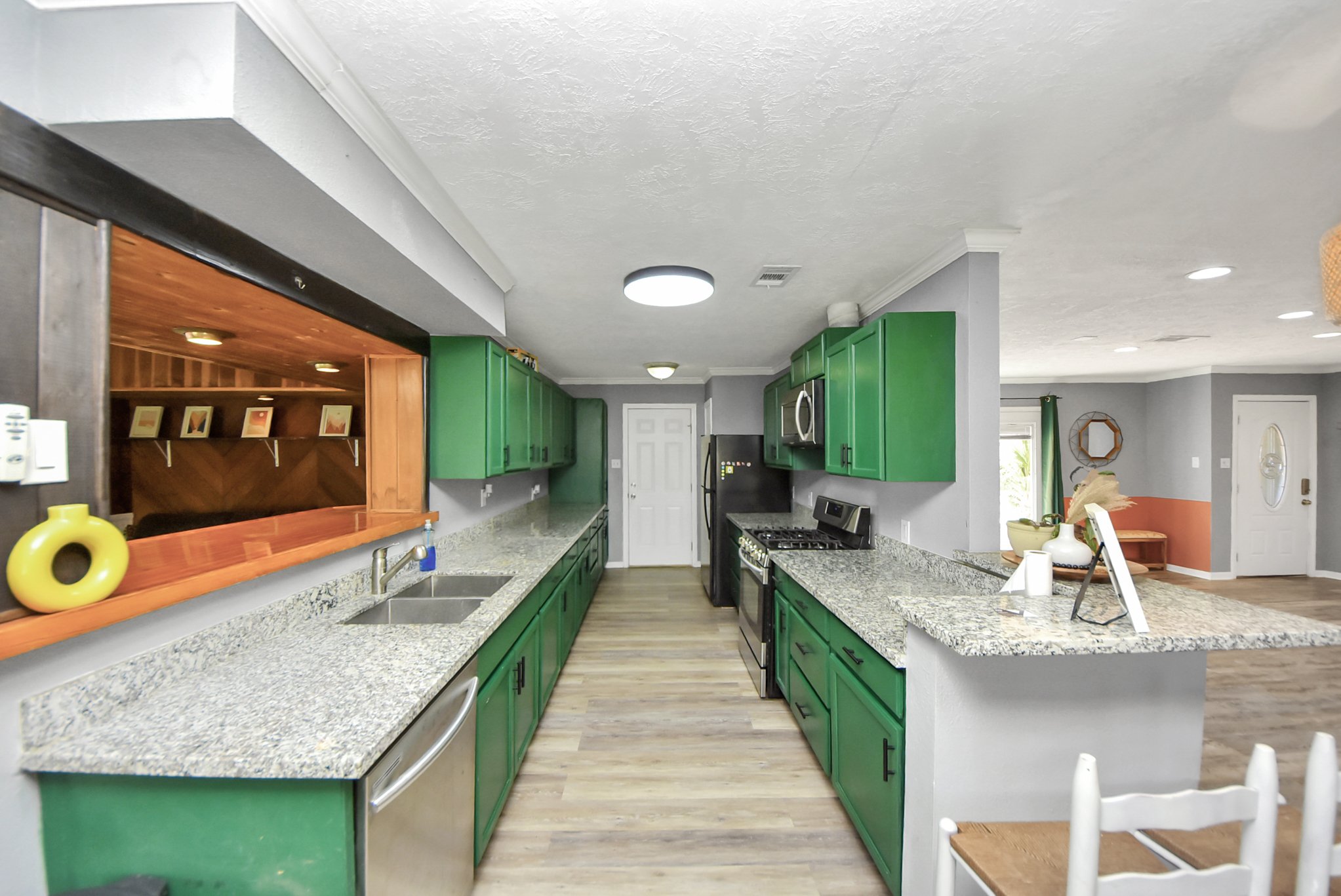 Welcome to this inviting home in the desirable Bay Colony subdivision of La Porte. Located on a quiet cul-de-sac and within walking distance to neighborhood parks and a fishing pier, this 3-bedroom, 2-bath home offers nearly 2,000 sq. ft. of comfortable living space. The open-concept layout is filled with natural light and features updated flooring throughout the main living areas. The kitchen includes granite countertops, a gas cooktop, and ample cabinet space, ideal for everyday living and entertaining. The spacious primary suite offers a private bath, while two additional bedrooms provide flexibility for guests or a home office. Enjoy the oversized living area or relax in the generous backyard. Recent updates include a new roof in 2020, full AC inspection, and furnace replacement in 2023. Additional features include a 2-car attached garage, slab foundation, public utilities, and transferable flood insurance. Conveniently located near schools, shopping, dining, and Highway 146!